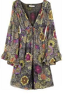El hecho de llevar estampados florales no significa que te vayas a ver como una niña cursi, las prendas de corte vanguardista también se acogen a esta tendencia, y más aun se combinan con brillos, para que puedas deslumbrar llevándolas de noche, como este vestido de Balenciaga de aires setenteros.