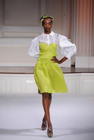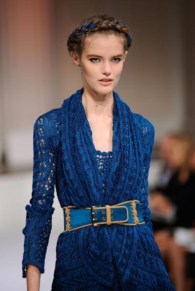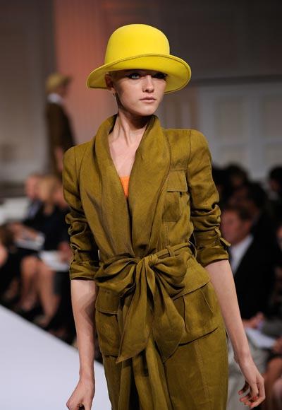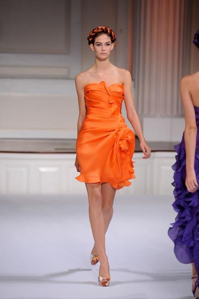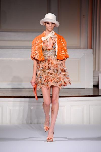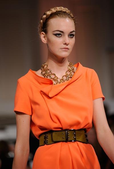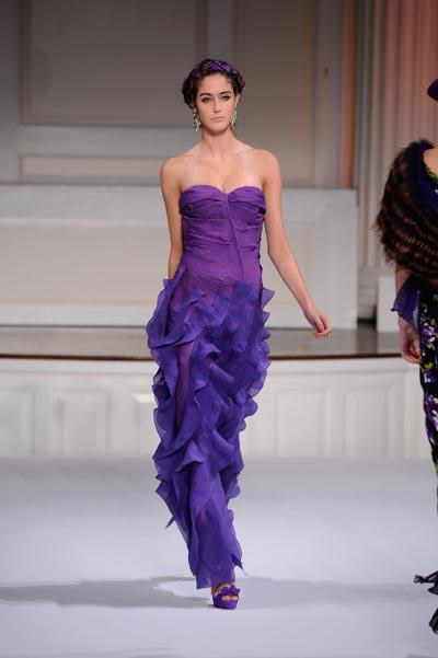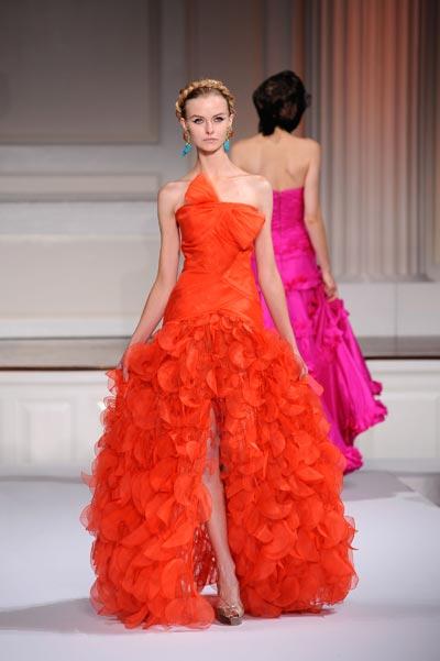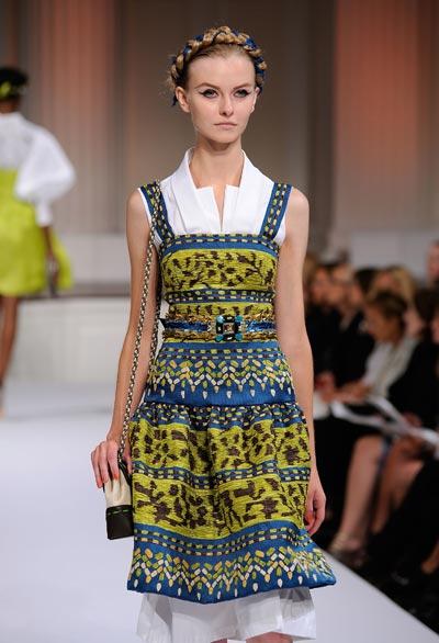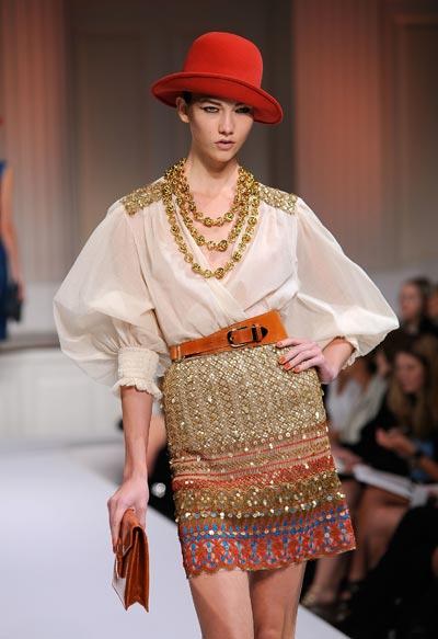 El diseñador scar De la Renta pareció inspirarse en las tradiciones de Africa, Sudamérica, el sureste de Asia y otros lugares.